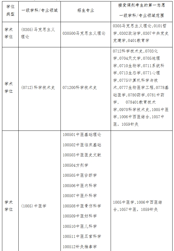 (3)我校各个专业可接受调剂考生的第一志愿一级学科/专业领域范围如下: